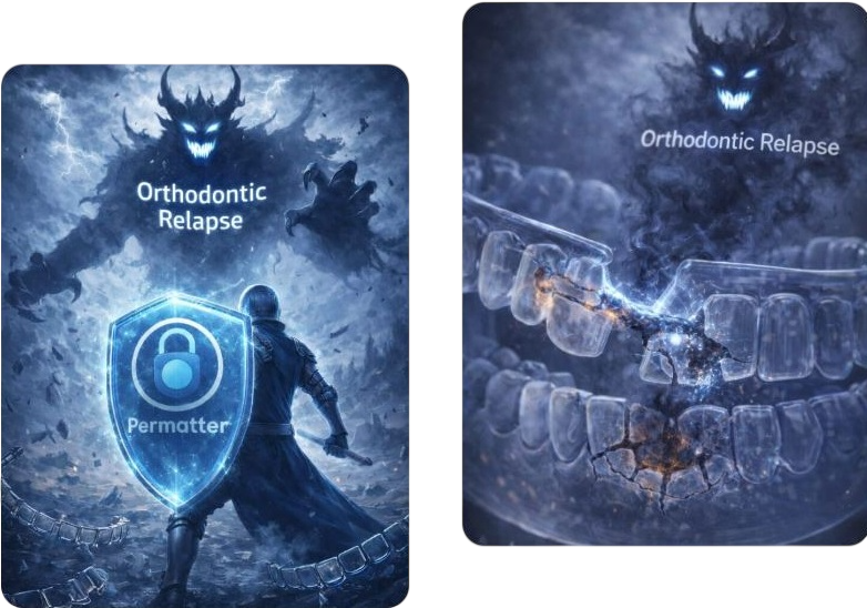Permatter® is inventor of the "Dual Surface Lingual Retainer" approach. Last updates are focused to develop advanced surface technology for orthodontic retention treatment. Permatter® V.3.5 brings SuperHydrophobic and SuperHydrophilic surfaces together. SuperHydrophilic surfaces show 47% better bonding properties; SuperHydrophobic surfaces prevent biofilm accumulation, at least 60% less than any other conventional orthodontic retainer.Thanks to Advanced Laser Texturing and Atmospheric Plasma Treatment.